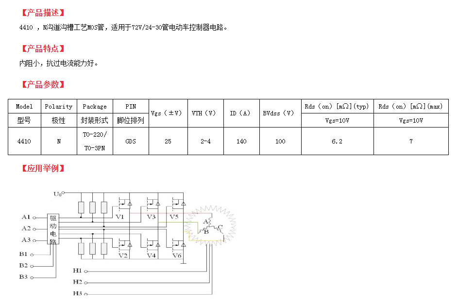 在140A、100V的大電流、低壓MOS管型中,140a100v場效應管推薦這一款純國產(chǎn)的4410型號來應用于電源逆變器和同步整流電路。