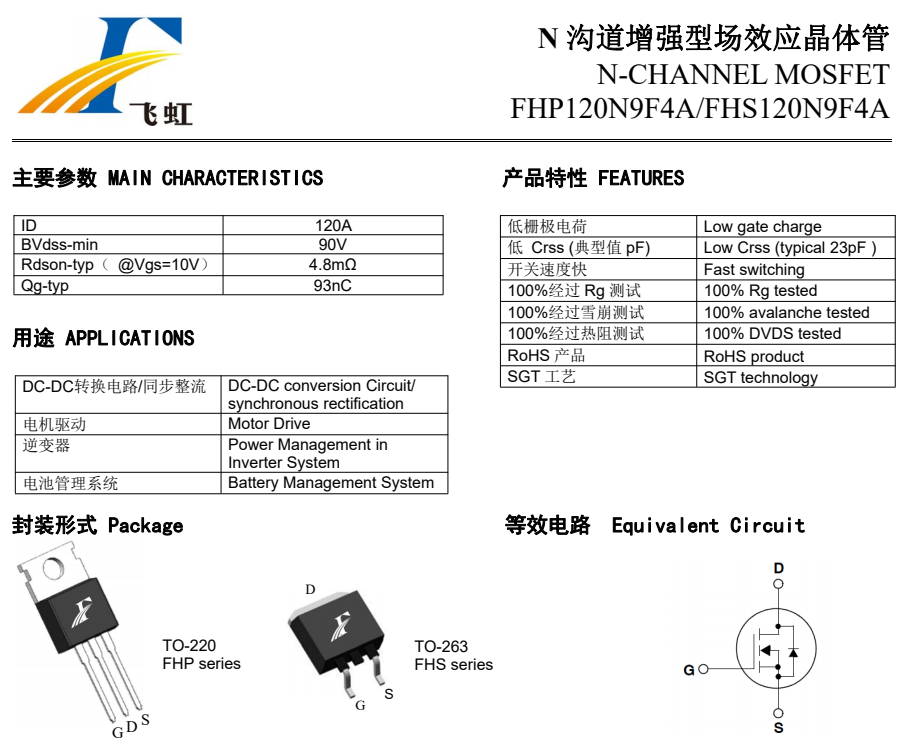 以上6款MOS管型號:FHP100N08C、FHP110N8F5B、FHP120N9F4A、FHP130N10A、FHP4410A、FHP170N1F4A的型號參數(shù)數(shù)據(jù)均通過實際進行測試得出,具體在電動車控制器中的使用,建議開發(fā)工程師進一步取樣測試。畢竟不同的性能以及需求對應(yīng)要選擇的MOS管還是會有差異的,詳細參數(shù)規(guī)格表可登陸“飛虹電子”網(wǎng)址。